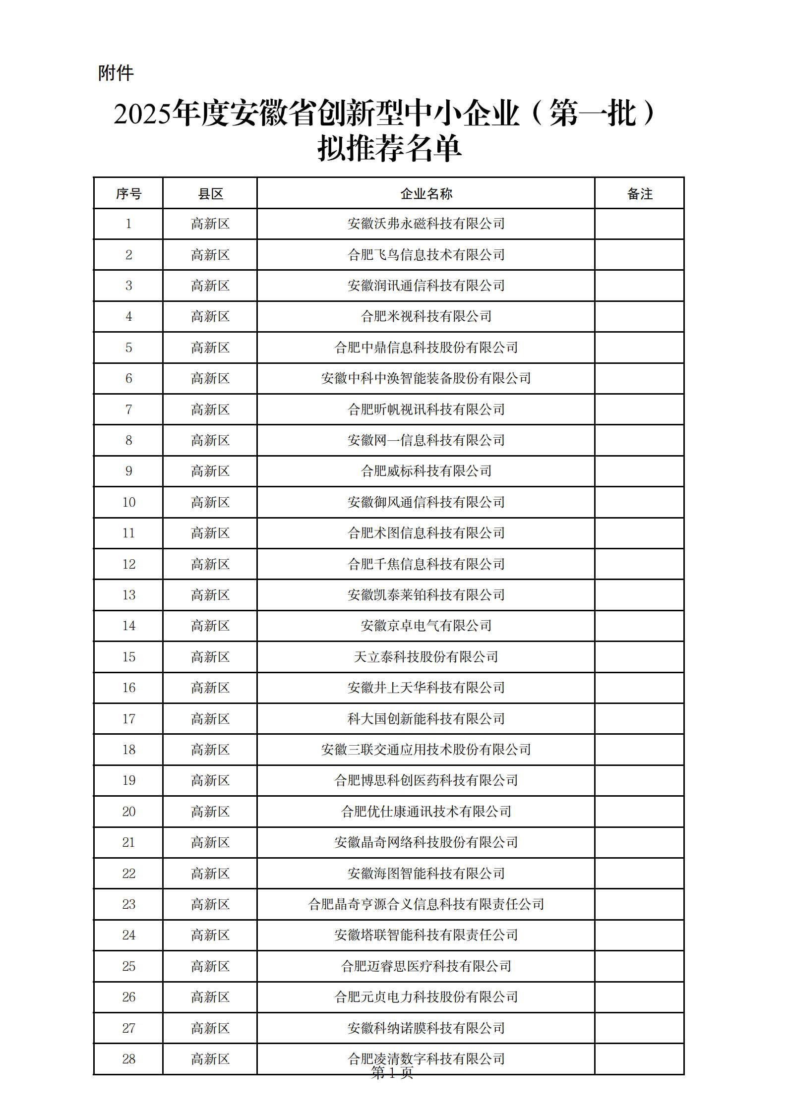 附件 2025年度安徽省创新型中小企业(第一批)拟推荐名单.pdf
